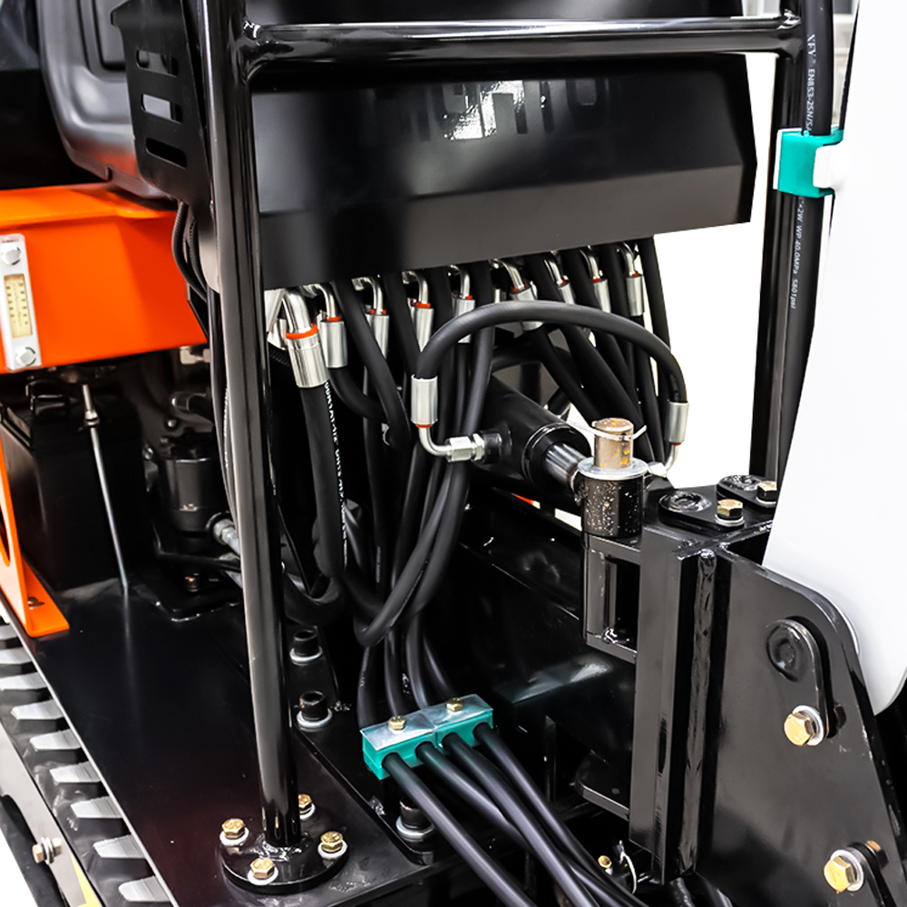 HT08小型挖掘機(jī)獨(dú)特的大臂結(jié)構(gòu)設(shè)計(jì),操作前管道暢通。 保護(hù)蓋可保護(hù)管道免遭破壞。