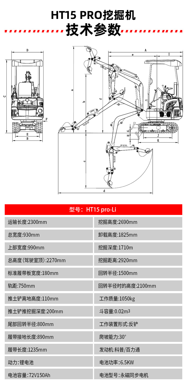 HT15 Pro Li 小型挖掘機