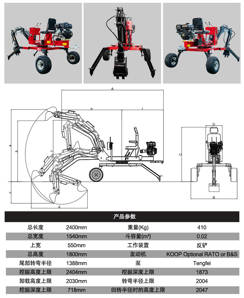 挖掘高度上限 2404mm 挖掘深度上限 1873
