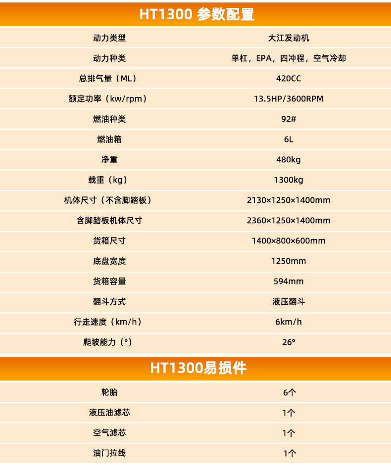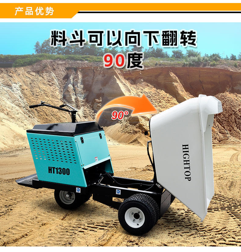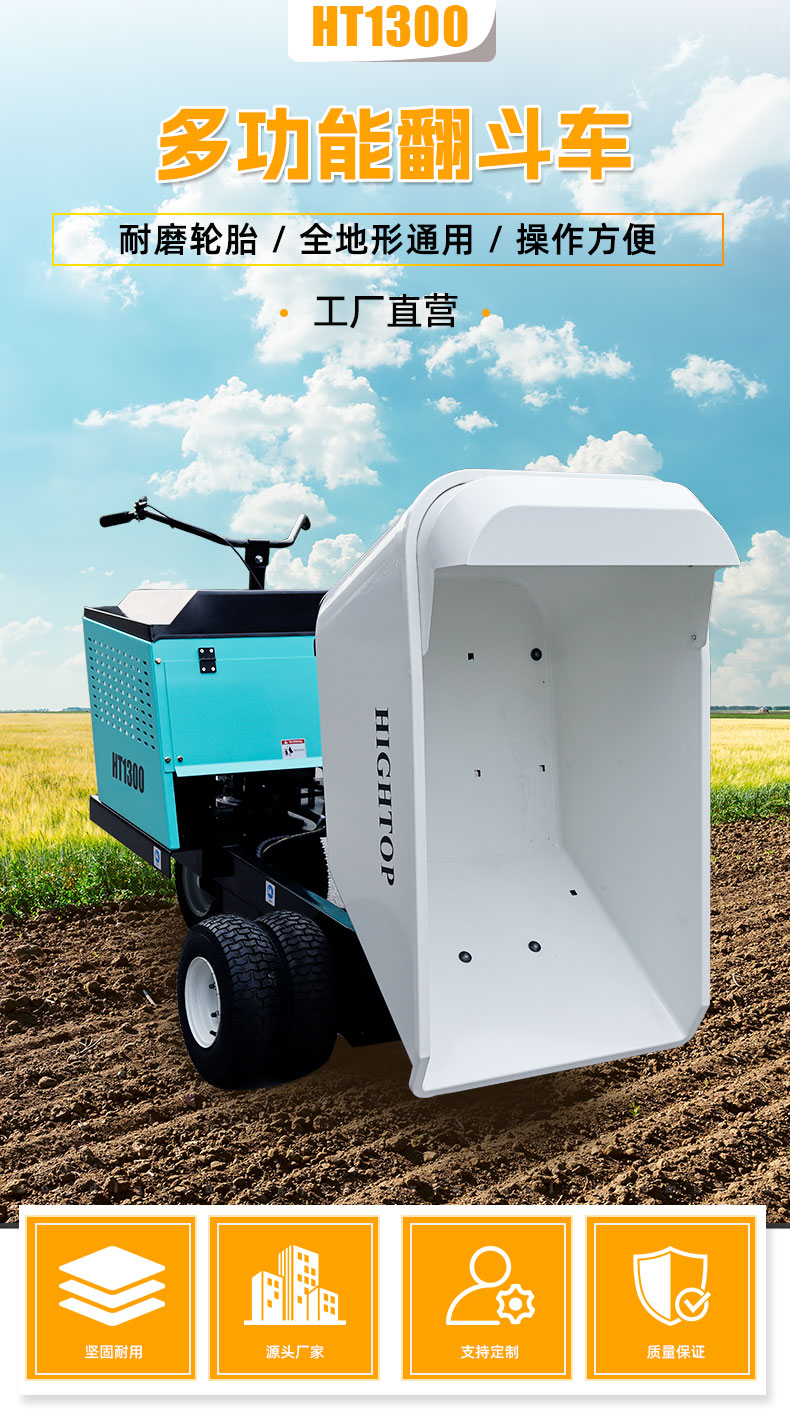 HT1300 多功能翻斗車主要適用于工地水泥石灰、農(nóng)場飼料運輸、農(nóng)業(yè)肥料運輸、工廠車間倉庫。